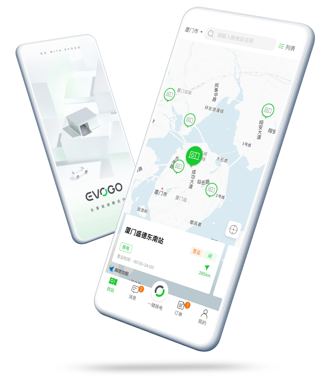 Fahrzeuge, die mit Choco-SEBs ausgestattet sind, unterstützen sowohl das Aufladen als auch das Austauschen von Batterien, um Energie zu tanken. Zusammen mit den bestehenden Haushalts- und Schnellladestationen bietet EVOGO eine Lösung für alle Szenarien des Stromtankens.